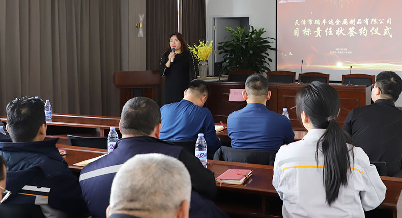 為確保公司發(fā)展戰(zhàn)略有效落實,全面實現(xiàn)公司2022年度各部門工作目標(biāo),強化企業(yè)執(zhí)行力,提升核心競爭力。2月20日,天津市瑞豐達金屬制品有限公司目標(biāo)責(zé)任狀簽約儀式隆重舉行??偨?jīng)理張加軍、CEO王娟、各部門負責(zé)人、中高層管理人員等出席此次會議。